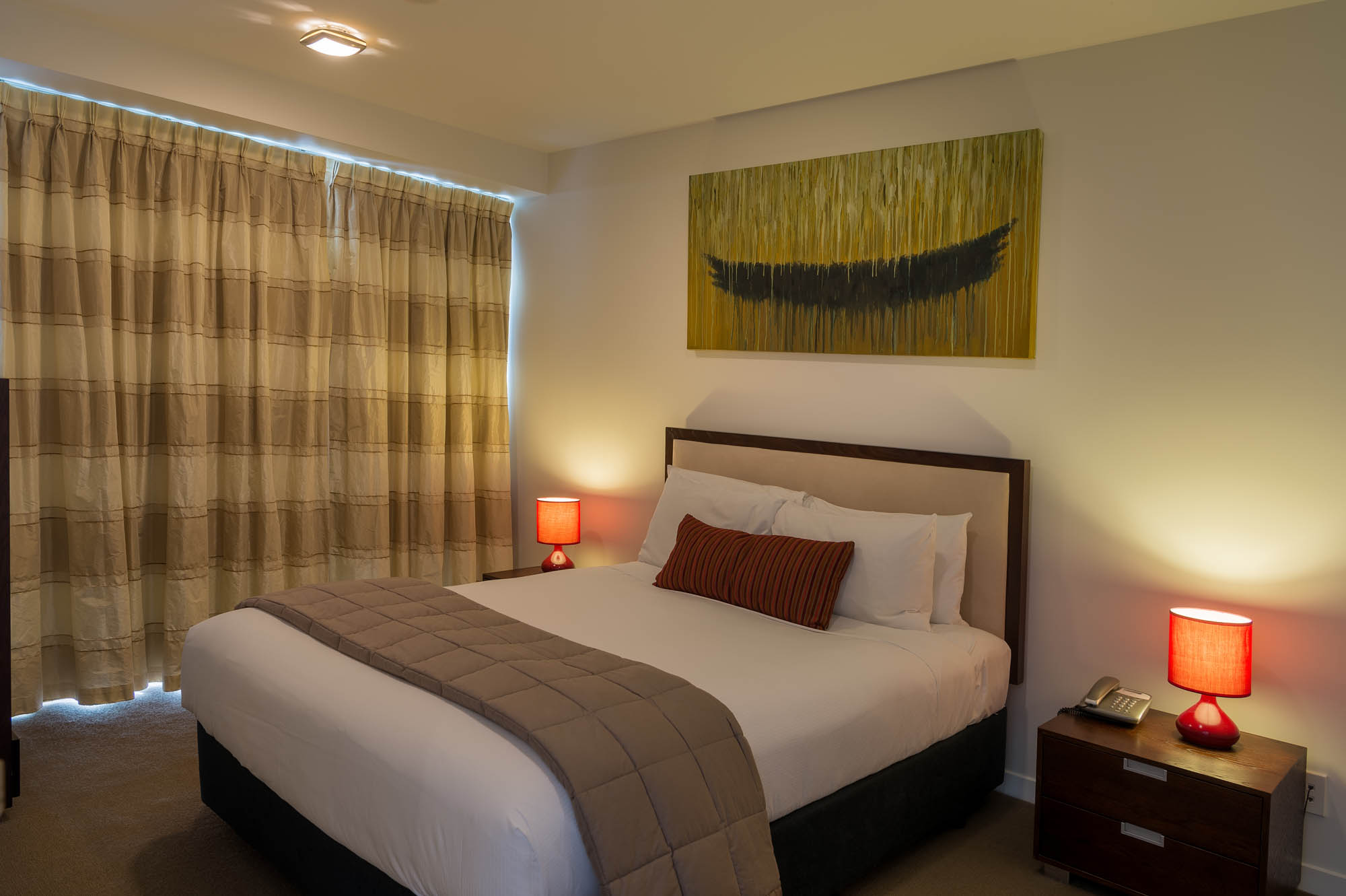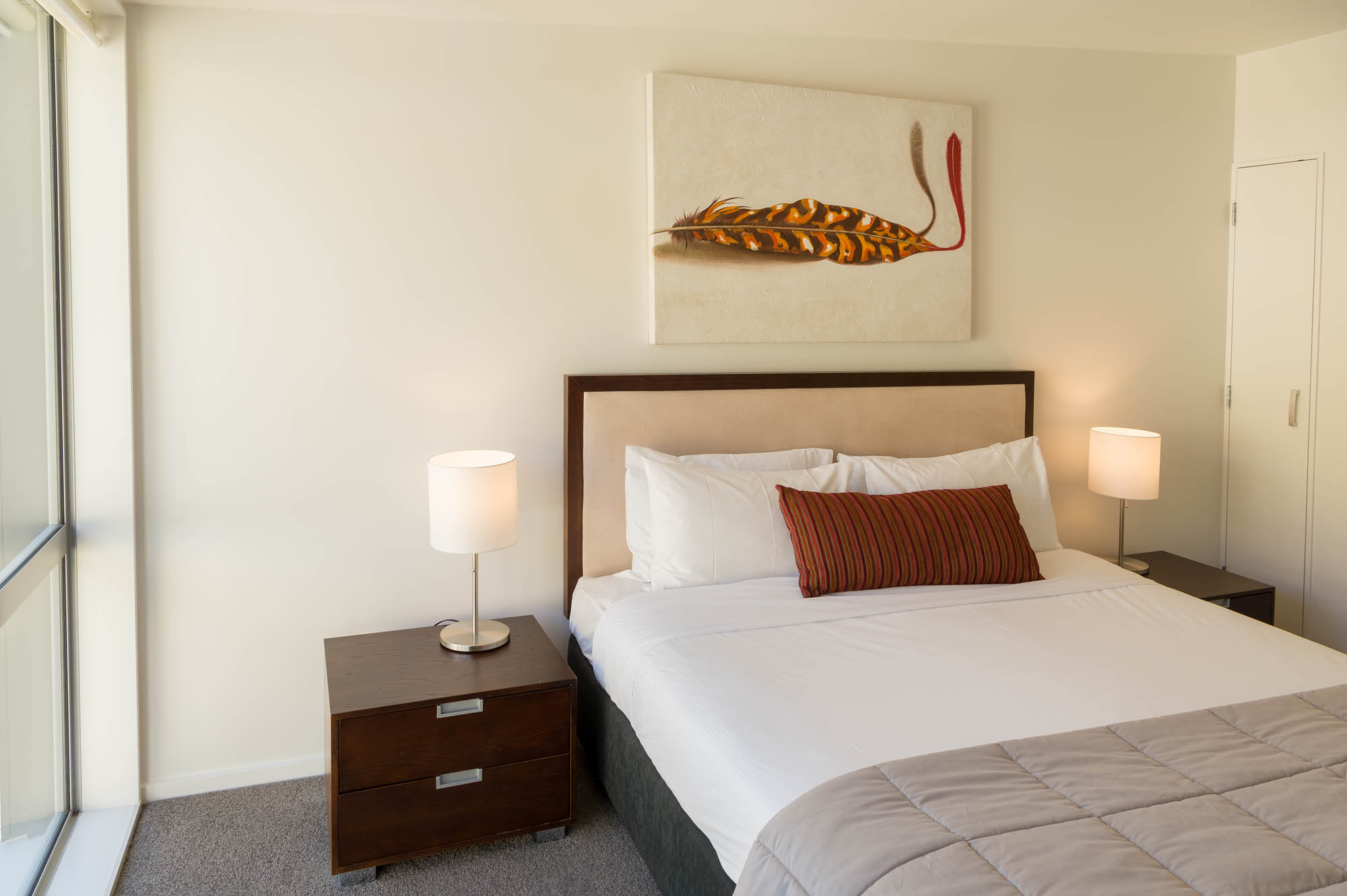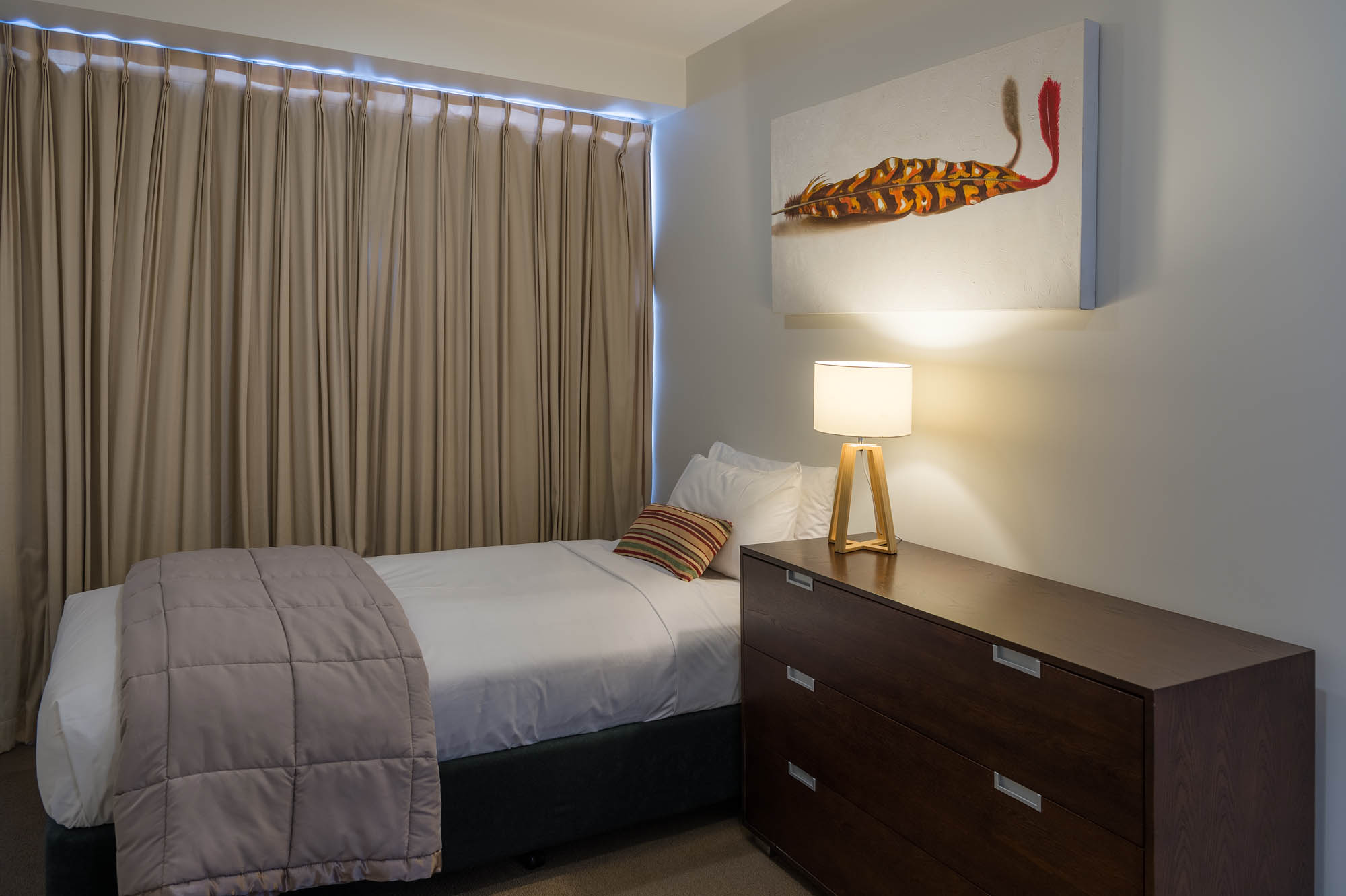 Our One Bedroom Interior Apartments located in the North Tower are quiet and rear facing, with no views, however spaciously designed to suit those who value peace and comfort. Each apartment contains a queen sized bed, full laundry and kitchen facilities, as well as separate dining & living space, Nespresso coffee machine, chromecasting services and complimentary WiFi.