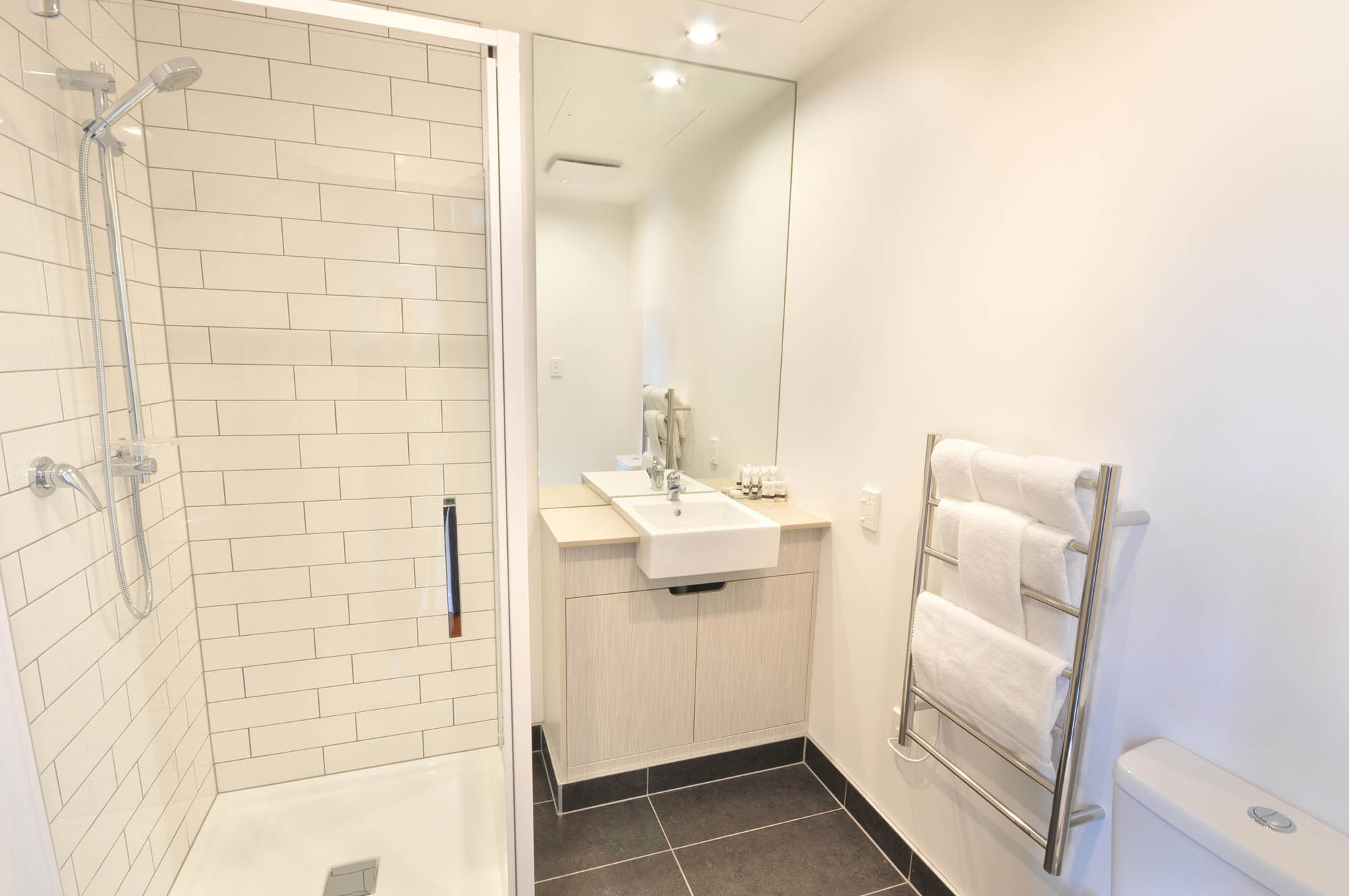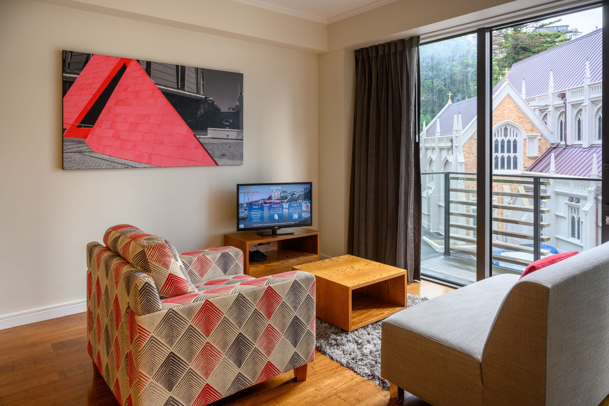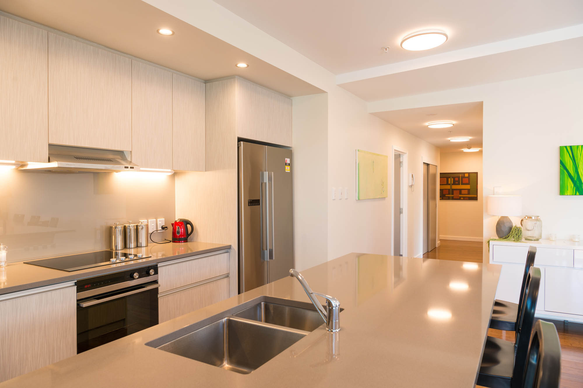 Our One Bedroom Interior Apartments located in the North Tower are quiet and rear facing, with no views, however spaciously designed to suit those who value peace and comfort. Each apartment contains a queen sized bed, full laundry and kitchen facilities, as well as separate dining & living space, Nespresso coffee machine, chromecasting services and complimentary WiFi.