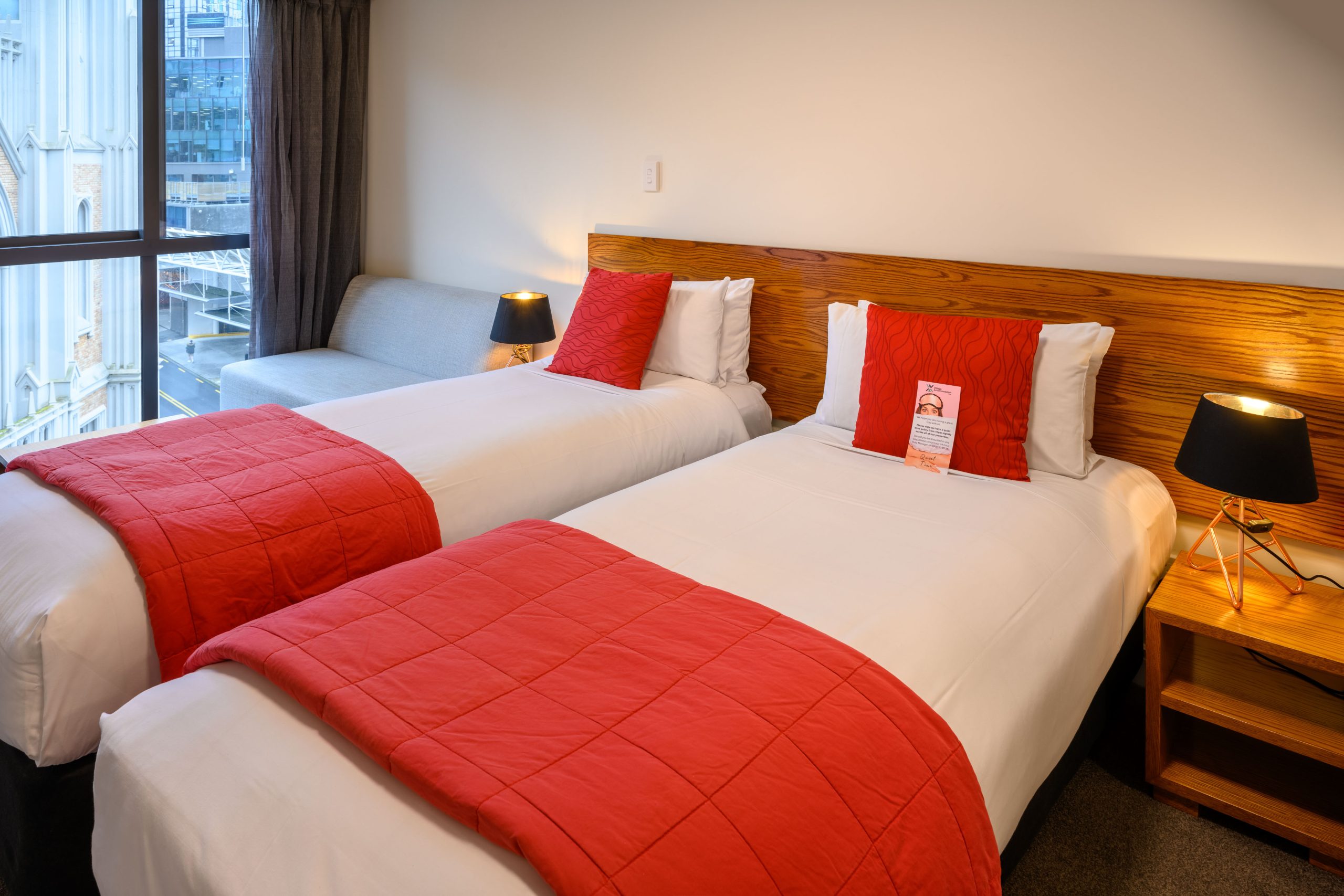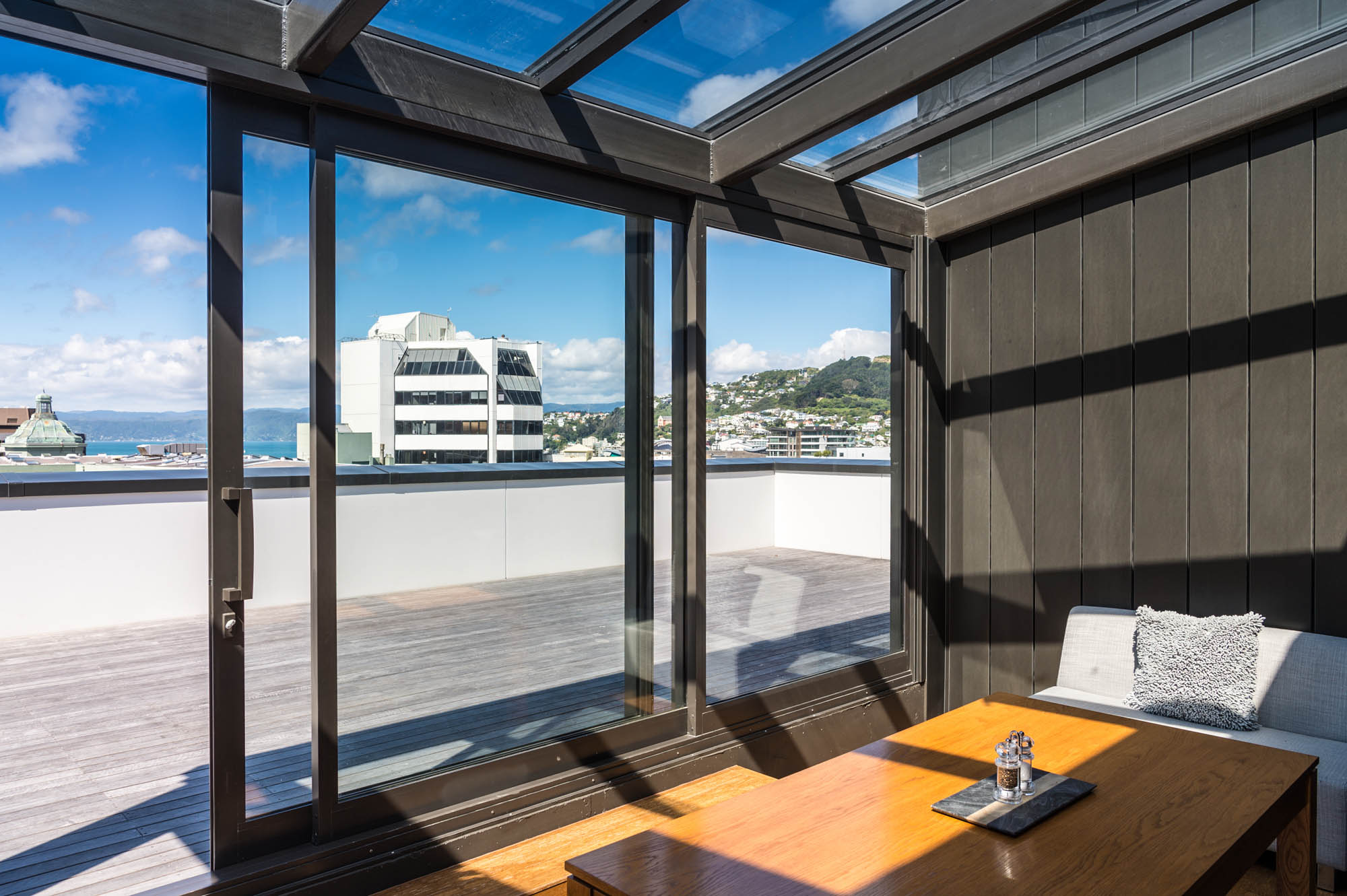 This is the ultimate stylish and luxurious accommodation, located on the top floor of our North Tower. With sweeping views over Wellington city, our three bedroom penthouse offers guests a special stay, featuring a spacious high end living & dining area and open plan kitchen, with designer furniture and a large deck built for entertaining. The 3 bedrooms offer guests the choice of two Queen bed and one King bed which can be split into 2 singles. Other notable inclusions are full laundry and kitchen facilities, complimentary WiFi, Nespresso coffee machine and chromecasting services.