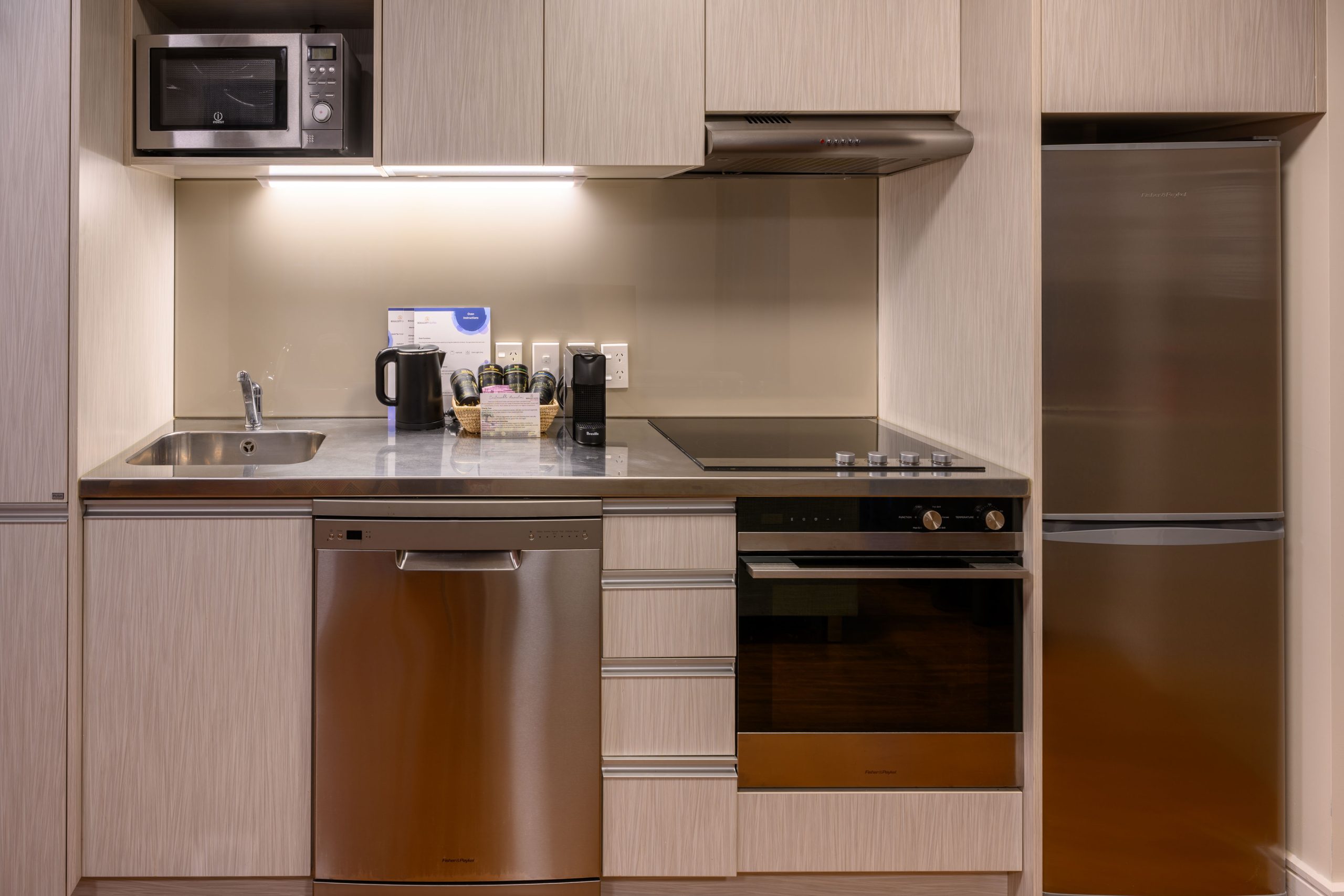 Our fully furnished two-storied executive townhouse with two bedrooms, each feature a luxury King bed, one of which can be split into singles if required. The spacious and stylish townhouses have all the benefits of home with fully equipped kitchen, full laundry facilities, two bathrooms, Nespresso coffee machine, complimentary WiFi, plus an outdoor patio for relaxing after a day in the city.